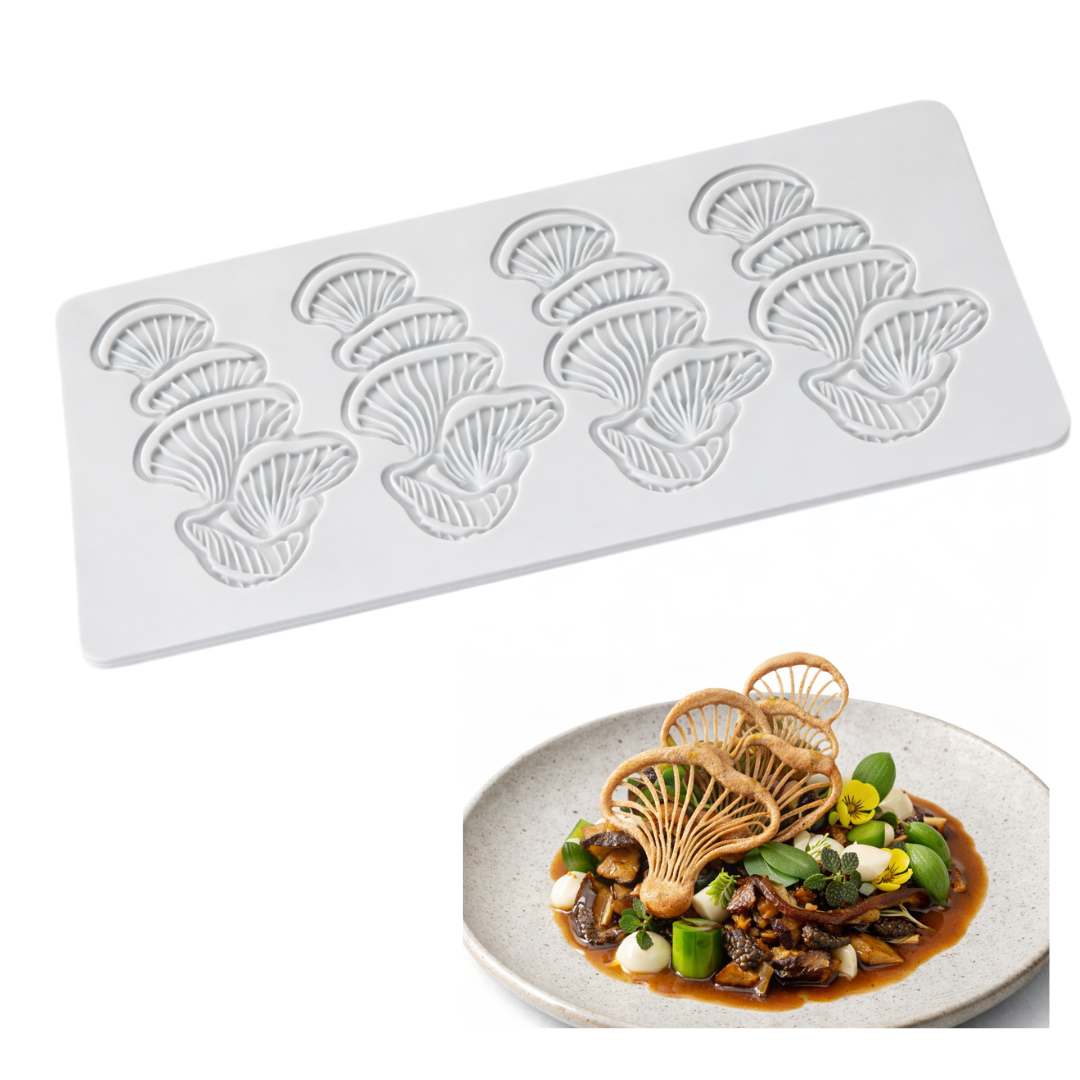 Moldes de silicone com texturas detalhadas e orgânicas. Riqueza de interpretações, para inovar seus pratos, enriquecendo o leque de possibilidades e liberar sua criatividade.